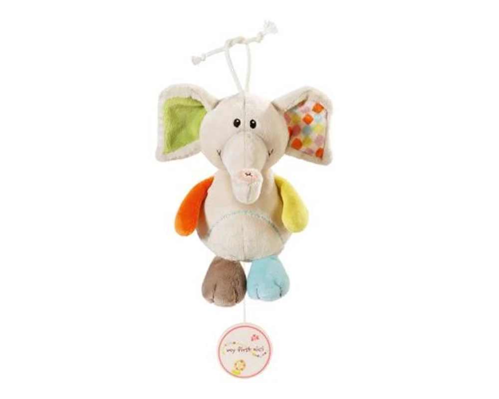 Die Elefant Dundi Spieluhr aus der Reihe My First NICI ist ein tolles Geschenk für Babys und Kleinkinder. Zieht man an der Schnur spielt der bunte Elefant Brahms Wiegenlied. Die weiche Spieluhr ist 18 cm groß und in gewohnt hochwertiger NICI Qaulität hergestellt. — Kinder lernen von Geburt an spielerisch die Welt entdecken – mit allen Sinnen. Unterstützen kann man die ersten Lernprozesse und die Wahrnehmung mit verschiedenen Sinnen mit ausgewähltem Spielzeug. My First NICI ist exakt auf jede Entwicklungsstufe abgestimmt und sorgt dafür, dass jeder kleine Schritt zu einem großen Fortschritt in der geistigen und körperlichen Entwicklung des Babys wird. My First NICI steht für vielfältige Produkte zum Fühlen und Begreifen, zur Förderung der Motorik, Kreativität und des Gedächtnisses. Hochwertiger Plüsch kombiniert mit liebevoll gestalteten Spiel- und Lernprodukten, die von erfahrenen Designern, die selbst Eltern sind, für Babys entwickelt wurden. NICI legt größten Wert auf ausgezeichnete Produktqualität und modernste Sicherheitsstandards. Aus diesem Grund führen wir strenge Qualitätskontrollen durch und lassen unsere Babyprodukte von einem unabhängigen Prüfinstituts testen und zertifizieren.
