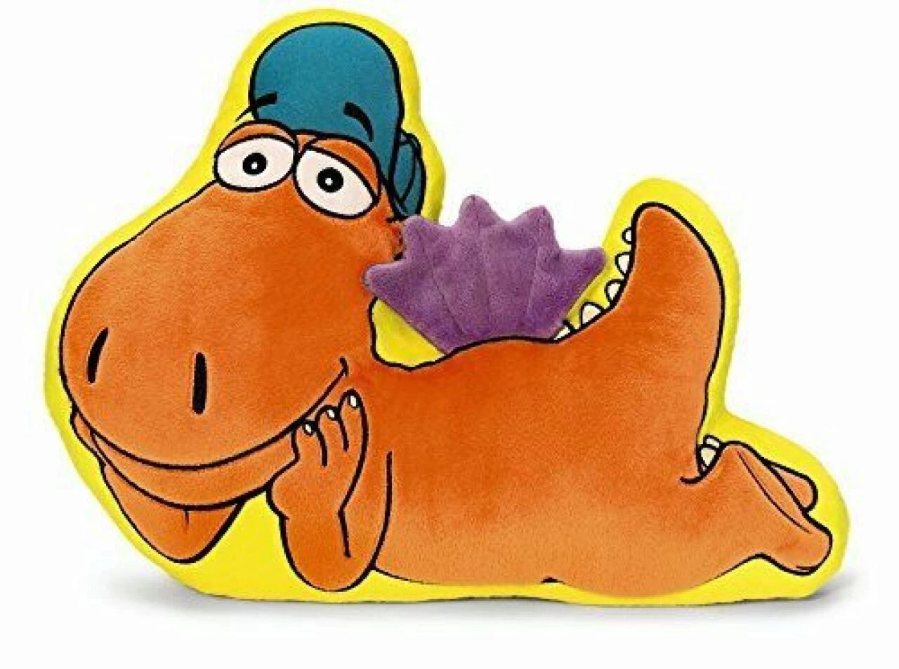 Figürliches Plüschkissen des kleinen Drachen Kokosnuss, der auf dem Bauch liegt, den Kopf auf die Hände stützt und ganz verträumt schaut. Als besonderes Detail sind seine lila Flügel appliziert und somit beweglich. Hergestellt in gewoht hochwertiger und geprüfter NICI Qualität, waschbar bei 30 Grad. Maße 50 x 29 cm. — Der kleine Drache Kokosnuss ist ein Feuerdrache, der mit seinen Eltern auf einer Dracheninsel wohnt. Immer mit von der Partie sind seine beste Freunde, das Stachelschwein Matilda und der Fressdrache Oskar. Zusammen haben sie drachenmäßig viel Spaß.