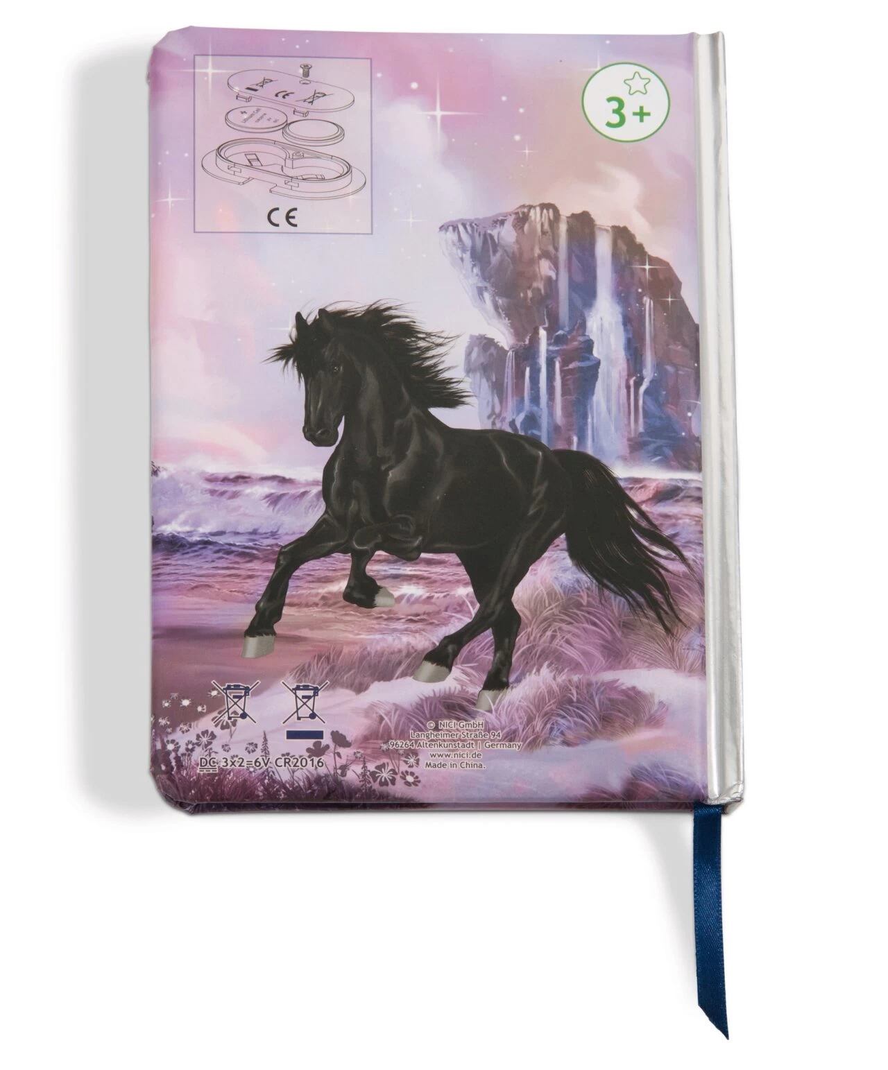 Das wunderschöne Notizbuch Hardcover „Soulmates Mystery Hearts“ mit LED von NICI sieht klasse aus und ist sowohl für die Schule, als auch für die Freizeit praktisch. Auf der Vorderseite ist das Pferd „White Peach“ zu sehen und auf der Rückseite der Hengst „Black Cassis“. Schaltet man das Licht an, beginnen die Sterne und der Mond sogar zu leuchten! Das perfekte Geschenk für Pferdemädchen.