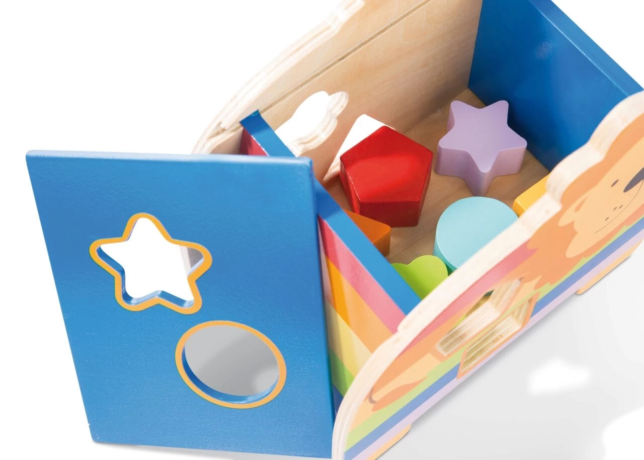 Das Formensortierspiel Löwe zeichnet sich durch seine lebendige Farbauswahl und das farbenfrohe Design aus. Verschiedene Formen wie Dreieck, Stern oder Würfel können in die passende Vertiefung in den Löwenkörper hinein sortiert werden. Spielerisch wird so die Motorik der Kleinen gefördert. Natürlich ist das Orange Tree Toys Holzspielzeug schadstoffrei und aus Holz aus nachhaltigem Anbau produziert.Das Formensortierspiel Löwe zeichnet sich durch seine lebendige Farbauswahl und das farbenfrohe Design aus. Verschiedene Formen wie Dreieck, Stern oder Würfel können in die passende Vertiefung in den Löwenkörper hinein sortiert werden. Spielerisch wird so die Motorik der Kleinen gefördert. Natürlich ist das Orange Tree Toys Holzspielzeug schadstoffrei und aus Holz aus nachhaltigem Anbau produziert.