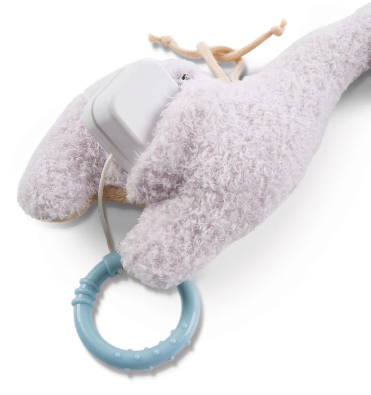 Wer hängt denn da am Bettchen? Die niedliche und ganz besonders weiche Giraffe Sasuma ist ein bezaubernder Schmusefreund und gleichzeitig eine plüschige Spieluhr. Die Spieluhr Giraffe bezaubert durch die verschiedenen Oberflächenapplikationen und ist von kleinen Händchen gut zu greifen. Zieht ein Erwachsener am hellblauen Ring, der am Bauch der Giraffe hängt, ertönt Mozarts Wiegenlied. Die kuschelweiche Giraffe ist eine tolle Einschlafhilfe und fördert gleichzeitig motorische und sensorische Fähigkeiten der Allerkleinsten.