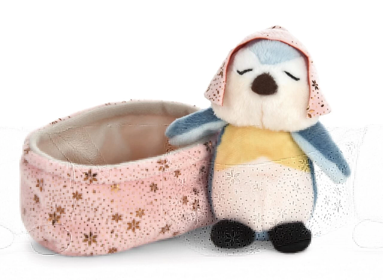 Das farbenfrohe Meisenküken Andoli erobern die Herzen von Kindern im Sturm. Ob zum Kuscheln, Spielen, Trösten oder Einschlafen – das flauschige, kleine Vögelchen wird schnell zum liebevollen Begleiter durch die Kindheit. Der schlafende Andoli überzeugt durch seine softig weiche Füllung und das flauschige Plüschfell für eine besonders kuschlige Haptik. Mit einer Größe von 12 cm und den geschlossenen, aufgestickten Augen ist Vogel Andoli einfach unvergleichlich süß. Hineingekuschelt in sein metallic-farben bedrucktes Plüsch-Körbchen fühlt sich Andoli nicht nur heimelig und gut aufgehoben, sondern kann so auch als Geschenk überreicht werden. Denn das Plüsch-Körbchen mit Vogel Andoli ist gleichzeitig auch die Produktverpackung. Die Sleeping Winter Friends sind Teil von NICI Green, der nachhaltigen Produktwelt von NICI. Für alle NICI Green-Produkte werden fast ausschließlich recycelte Materialien verwendet, die hauptsächlich aus PET-Flaschen hergestellt wurden.