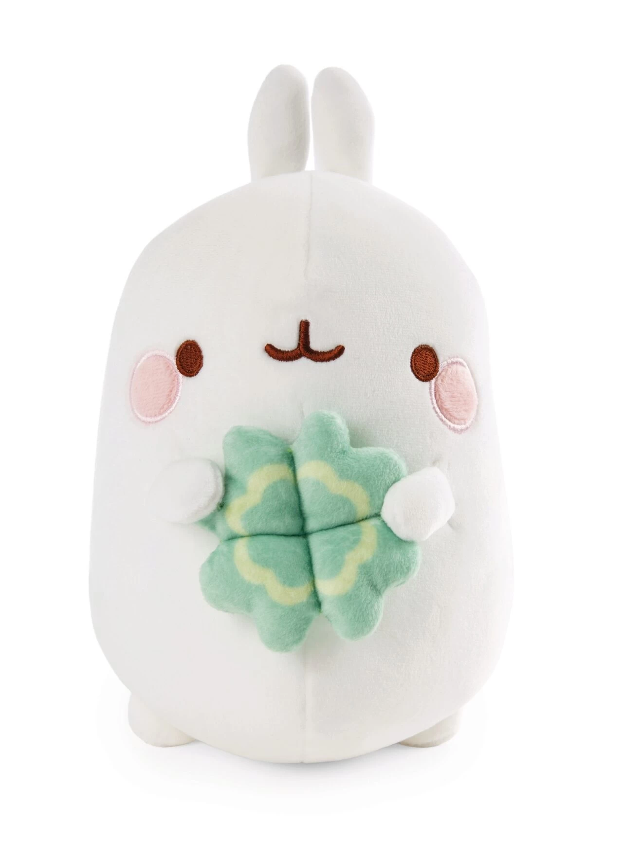 Molang, der liebenswerte Charakter aus der gleichnamigen TV-Vorschulserie und bekannt aus den sozialen Medien, ist ein zauberhafter Kuschelfreund aus super flauschigem, weißem Soft-Plüsch und einer besonders weichen Füllung. Molang hält einen süßen Glücksbringer in Form eines grünen, vierblättrigen Kleeblatts in den Händen und präsentiert sich in einer ansprechenden Geschenkverpackung. Mit seinem extrem niedlichen Gesichtsausdruck und der hochwertigen Verarbeitung knuddelt sich Molang in die Herzen seiner Fans jeden Alters.